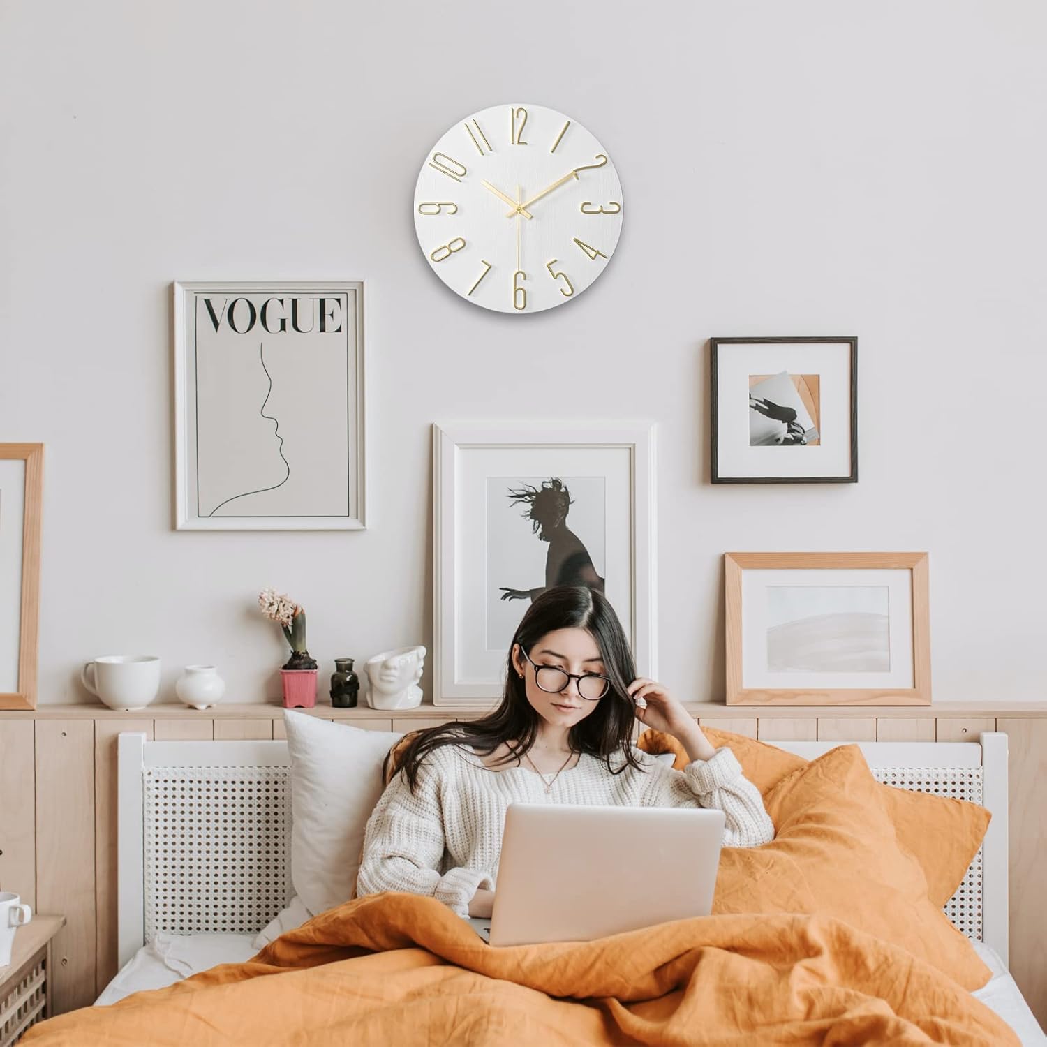 12 Inch Wall Clock Silent Non Ticking, Preciser Modern Style Decor Clock for Home, Office, School, Kitchen, Bedroom, Living Room (White)
