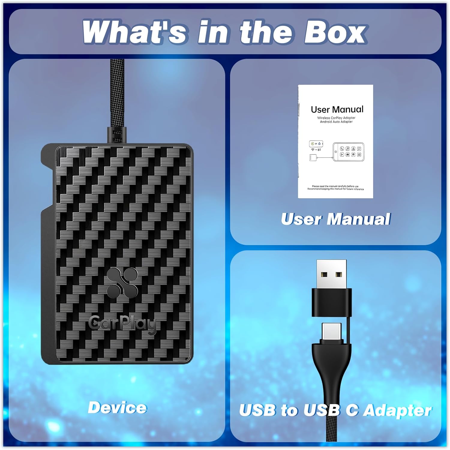 Wireless Carplay & Android Auto Adapter for iPhone & Android --- Easy to convert wired carplay to wireless with our wireless carplay adapter. You can continue to use the full CarPlay features such as navigation, music playback, Siri assistant, phone calls and more you loved iPhone features like custom wallpapers, third party parking and quick order apps etc. This updates allow the driver to focus more on the driving while enjoying in-car entertainment.
