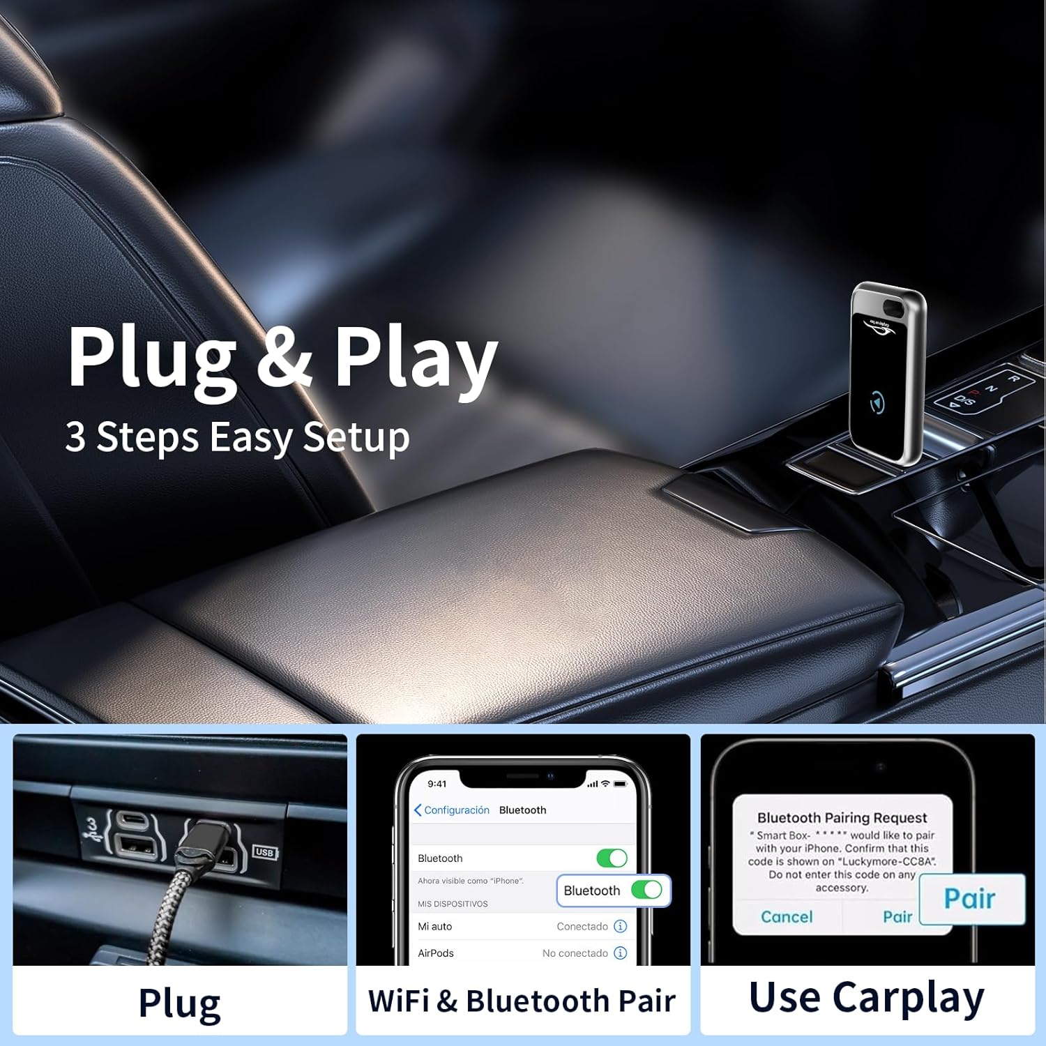 【Easy to Use】: Plug and play, no need for any additional drivers, applications or troublesome system upgrades. After first setup, our adapter automatically activates carplay & android auto wireless connectivity and connects to your phone every time the car is started.