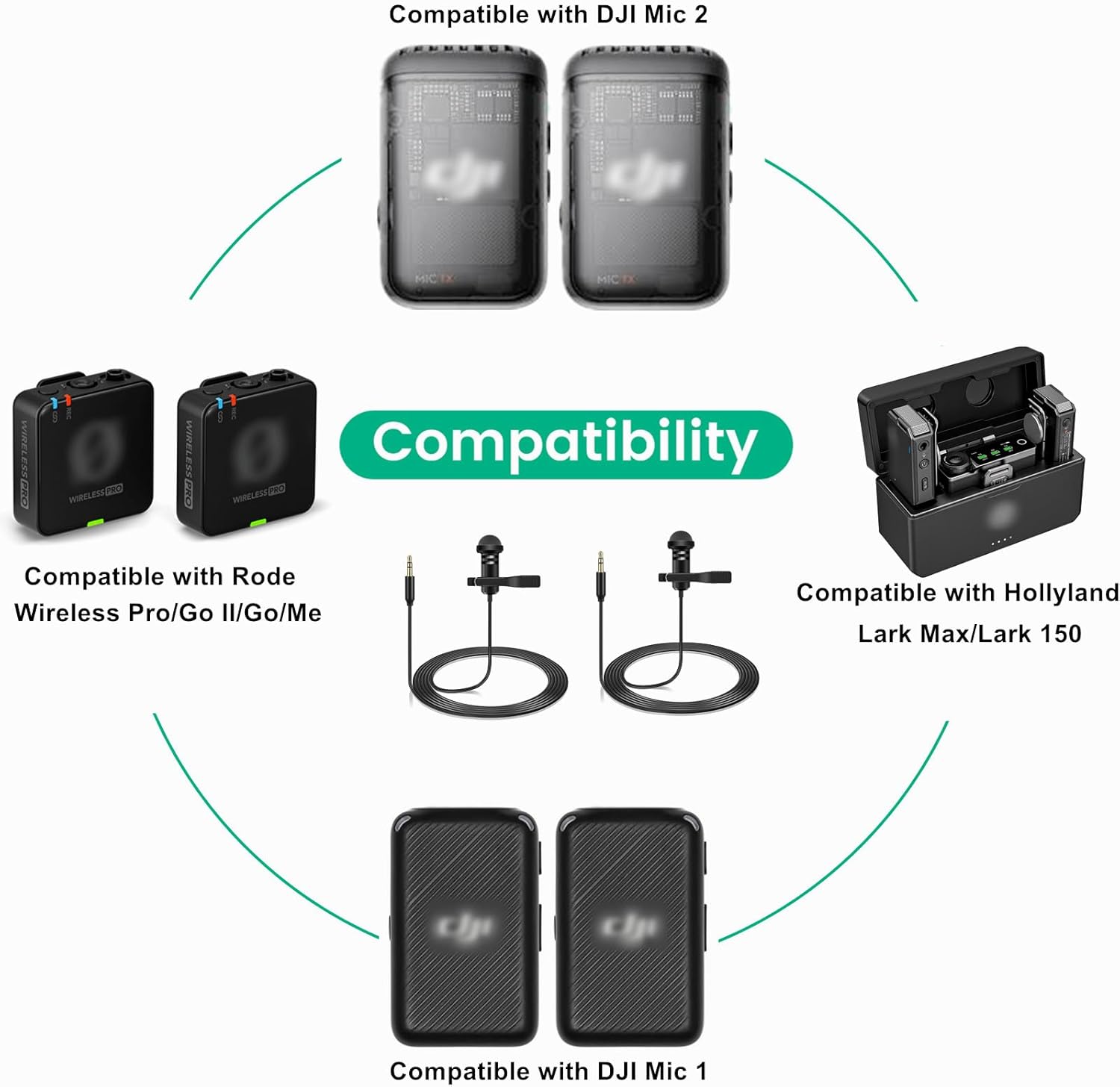 2 Pack Lavalier Microphone Compatible with DJI Mic 2 & Rode Wireless Pro/Wireless GO 2 / II Transmitters - Omnidirectional Lav Lapel Wearable Mic for Vlog Interview Streaming Lectures Broadcasters