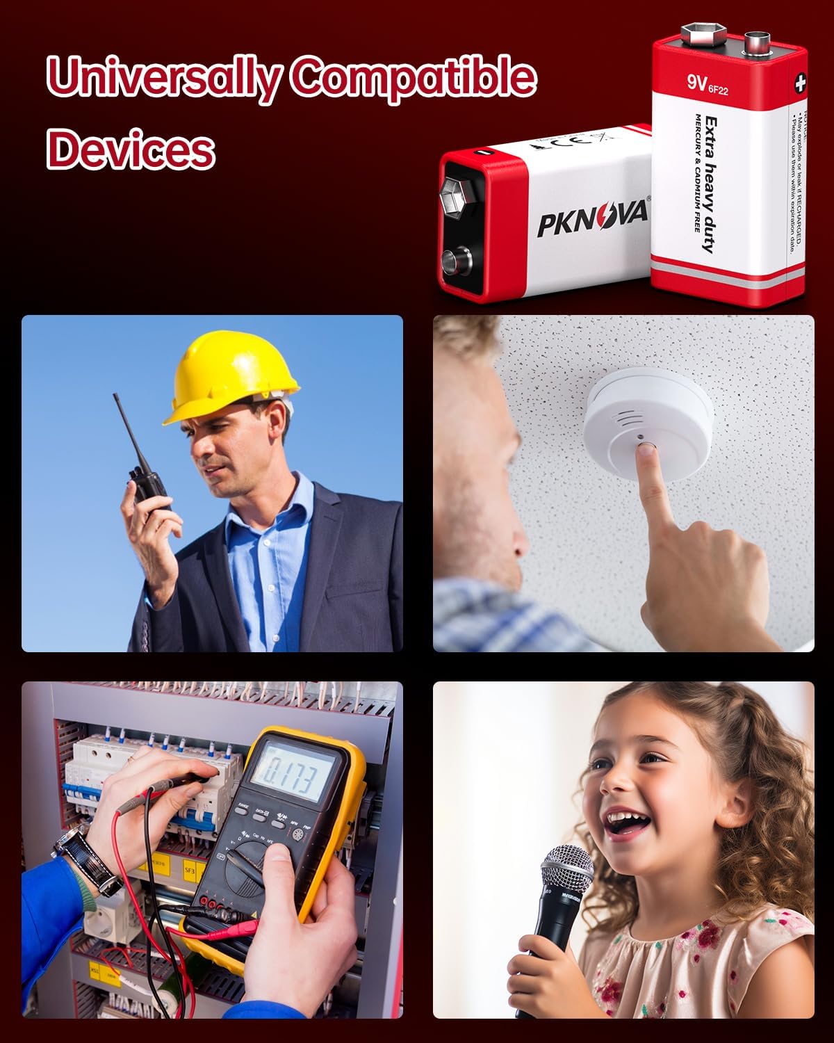 Safety first: PKNOVA 9v batteries are double-sealed for safety and leakage, in addition does not contain chromium, lead, or mercury chemicals.