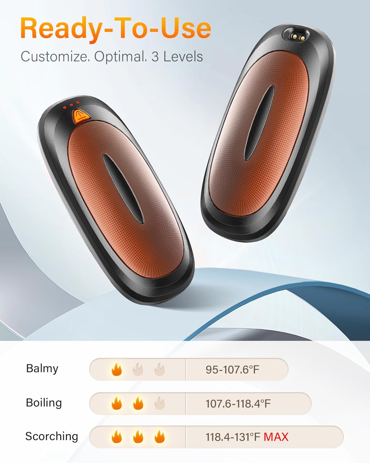 What You Get: Premium gift packaging includes 1 Charging case, 2 Hand warmers, USB-C cable, user manual, 12-month warranty, and 24-hour customer service; Perfect gift for Thanksgiving, Christmas, New Year, birthdays, and Valentine's Day; Keeps hands warm all day at the office, in class, camping, hunting, or during any outdoor winter activity.