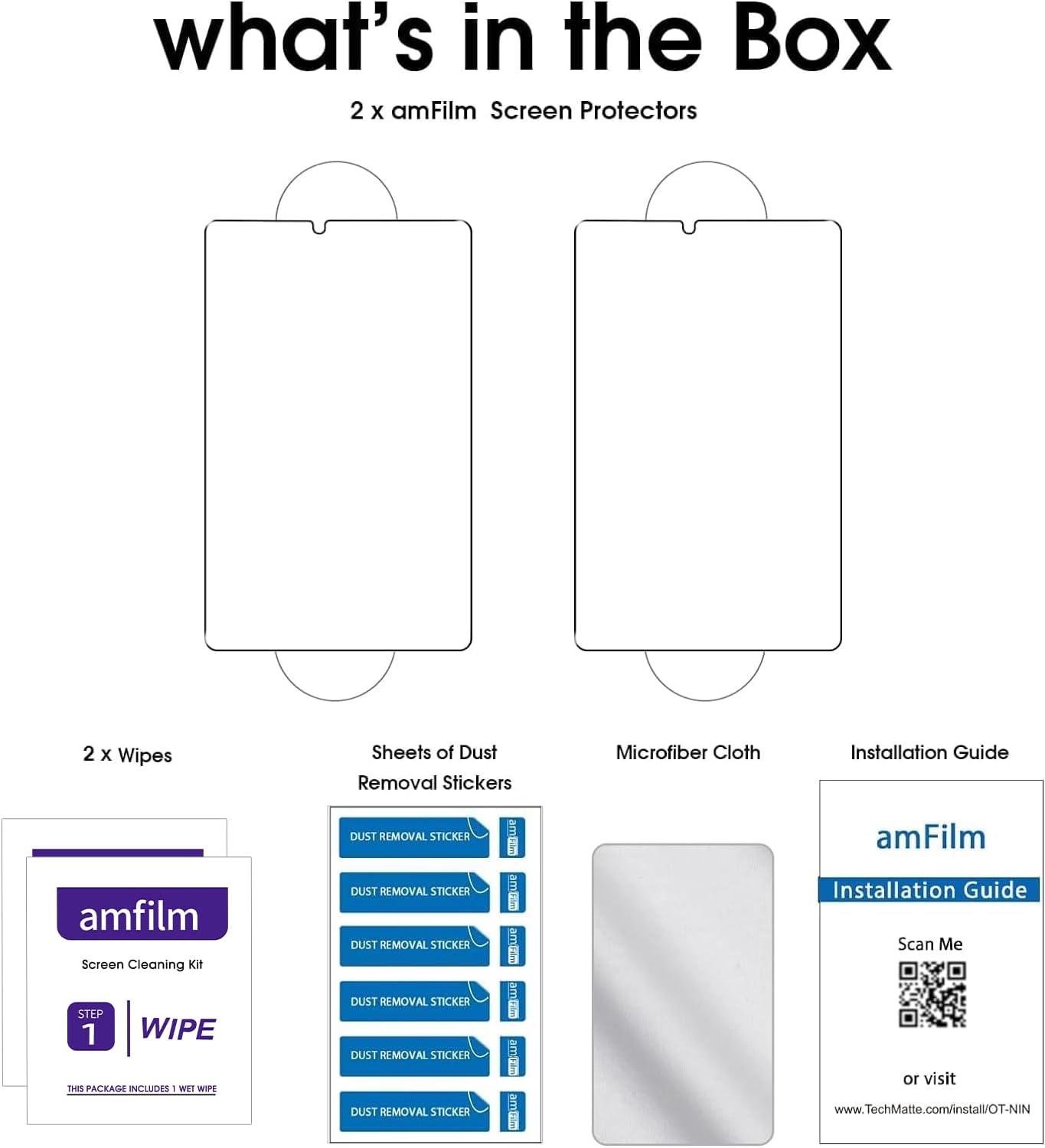2x amFilm Screen Protector, Microfiber Cloth, Cleaning Wipes, Easy Installation Manual.