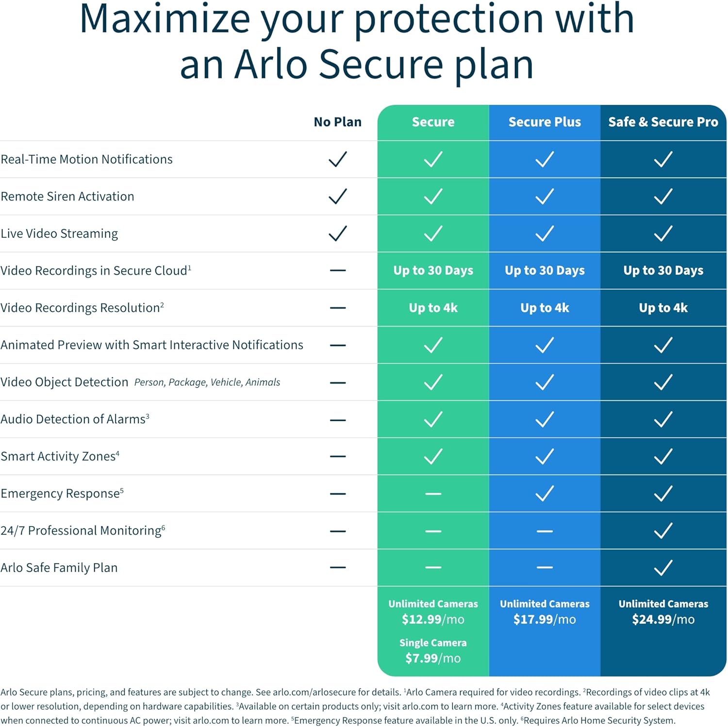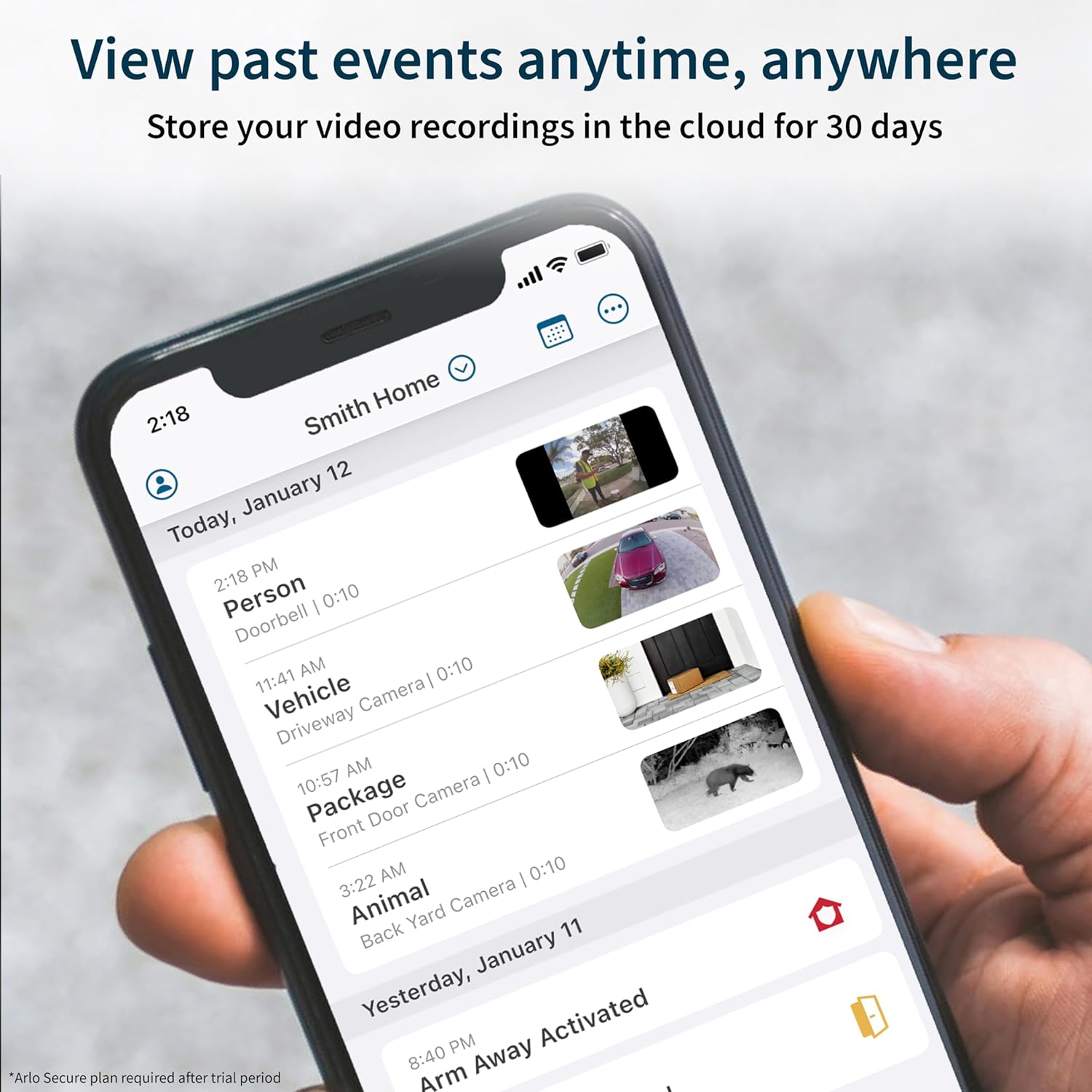 Smarter alerts, quicker action - With an Arlo Secure plan, receive smarter notifications for people, vehicles, packages, and animals so you can react quickly, right from your phone’s lock screen.