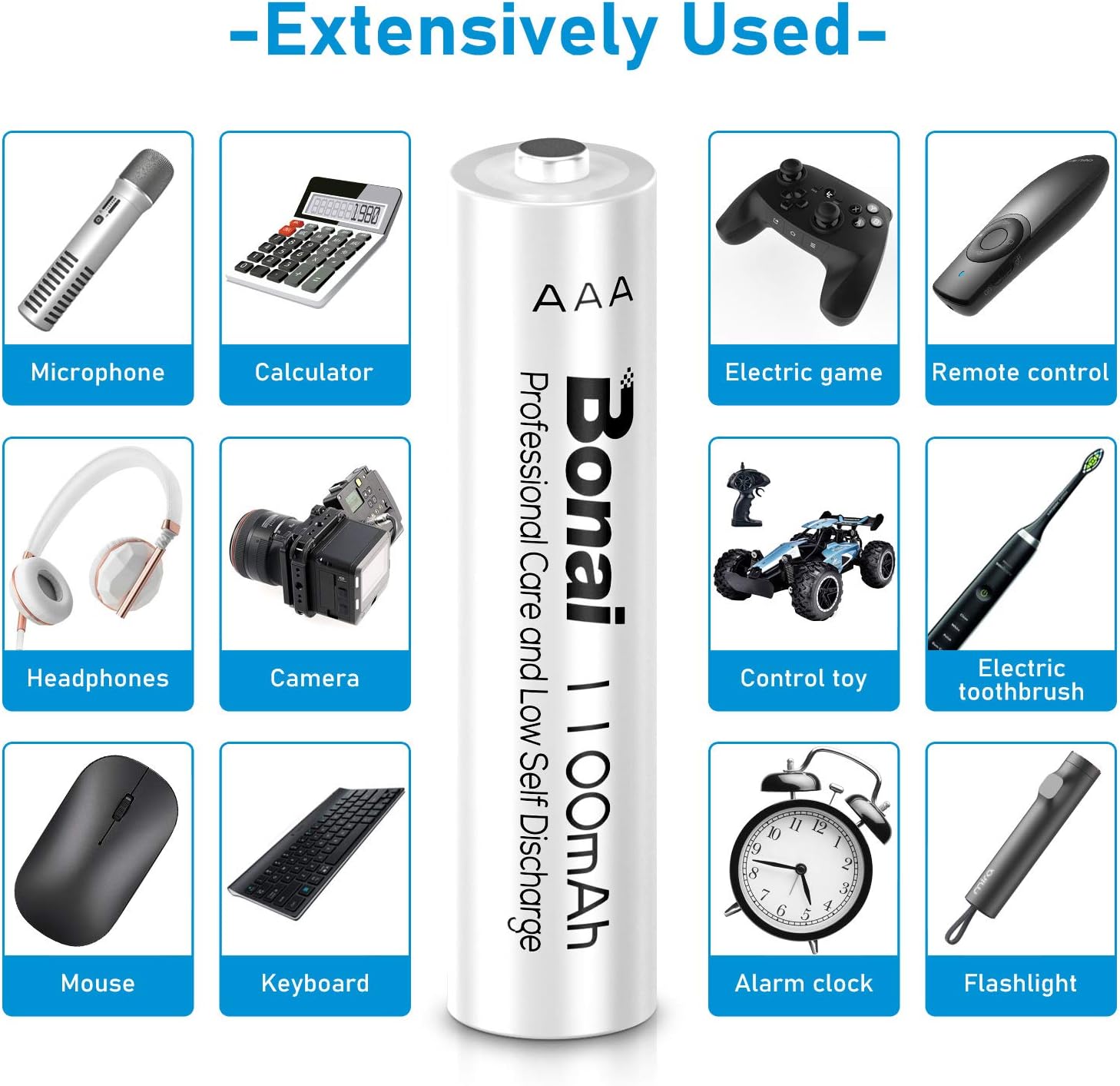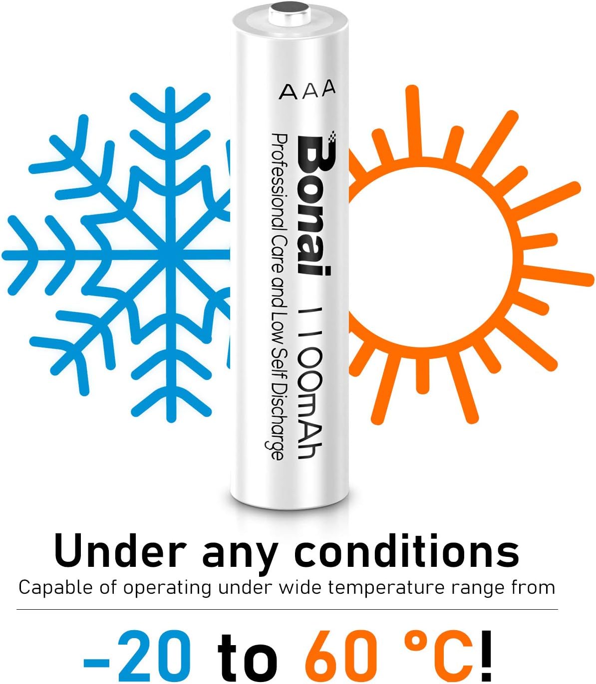 BONAI Rechargeable AAA Batteries • 1100 mAh • NiMH High-Capacity • Recharge up to 1200x • 16-Pack Pre-Charged