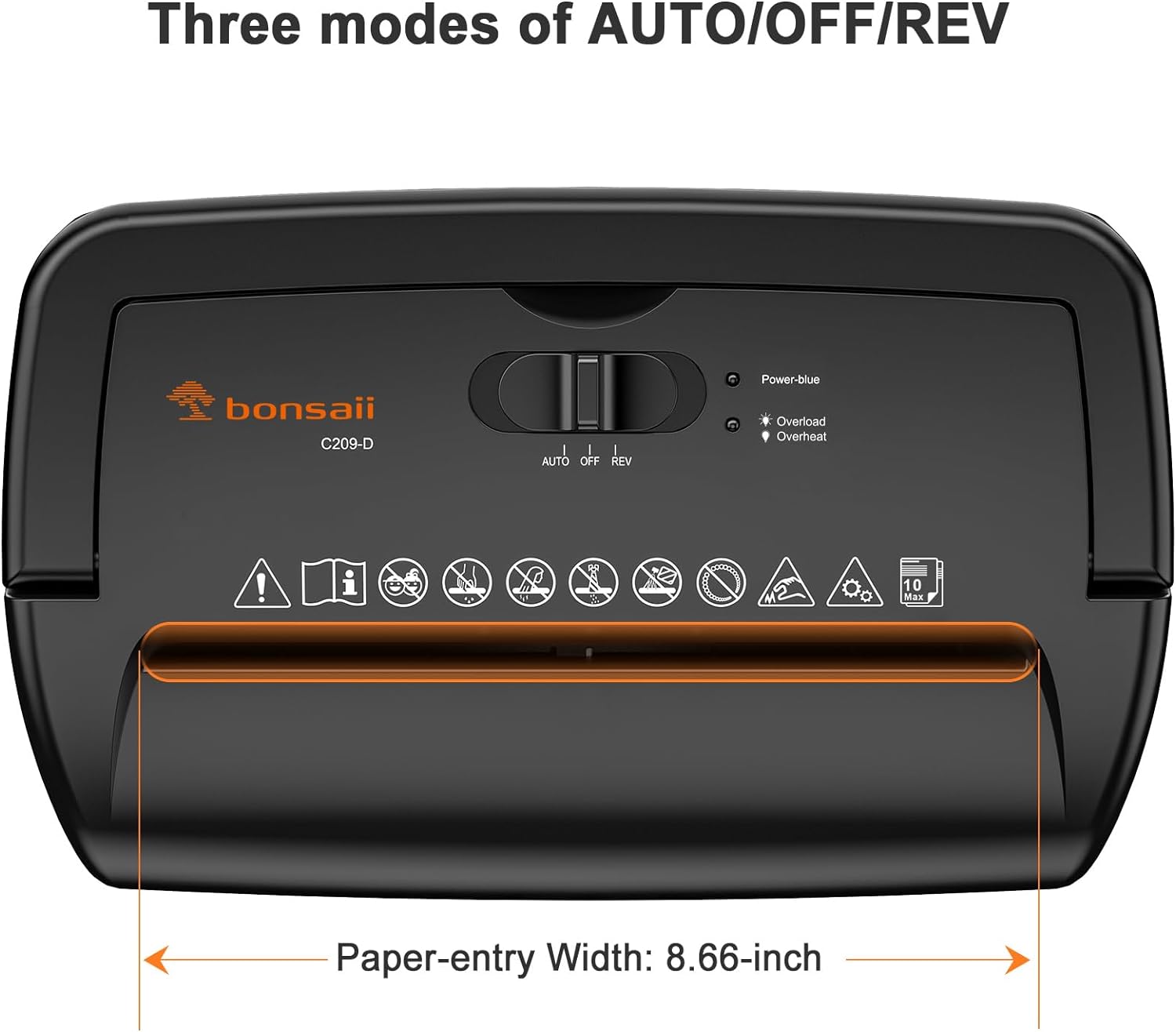Bonsaii 10-Sheet Cross Cut Paper Shredder, 5.5 Gal Home Office Heavy Duty Shredder for Credit Card, Staple, Clip with Transparent Window(C209-D)