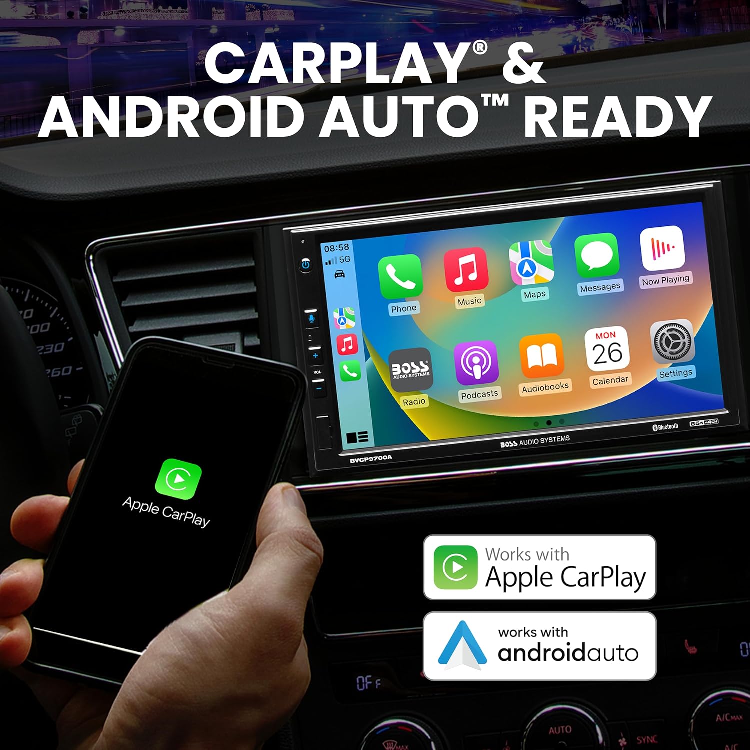 BOSS Audio Systems BVCP9700A Car Stereo - Apple CarPlay, Android Auto, Double Din, 7 Inch Touchscreen, Bluetooth, No CD DVD Player, AM/FM Radio Receiver