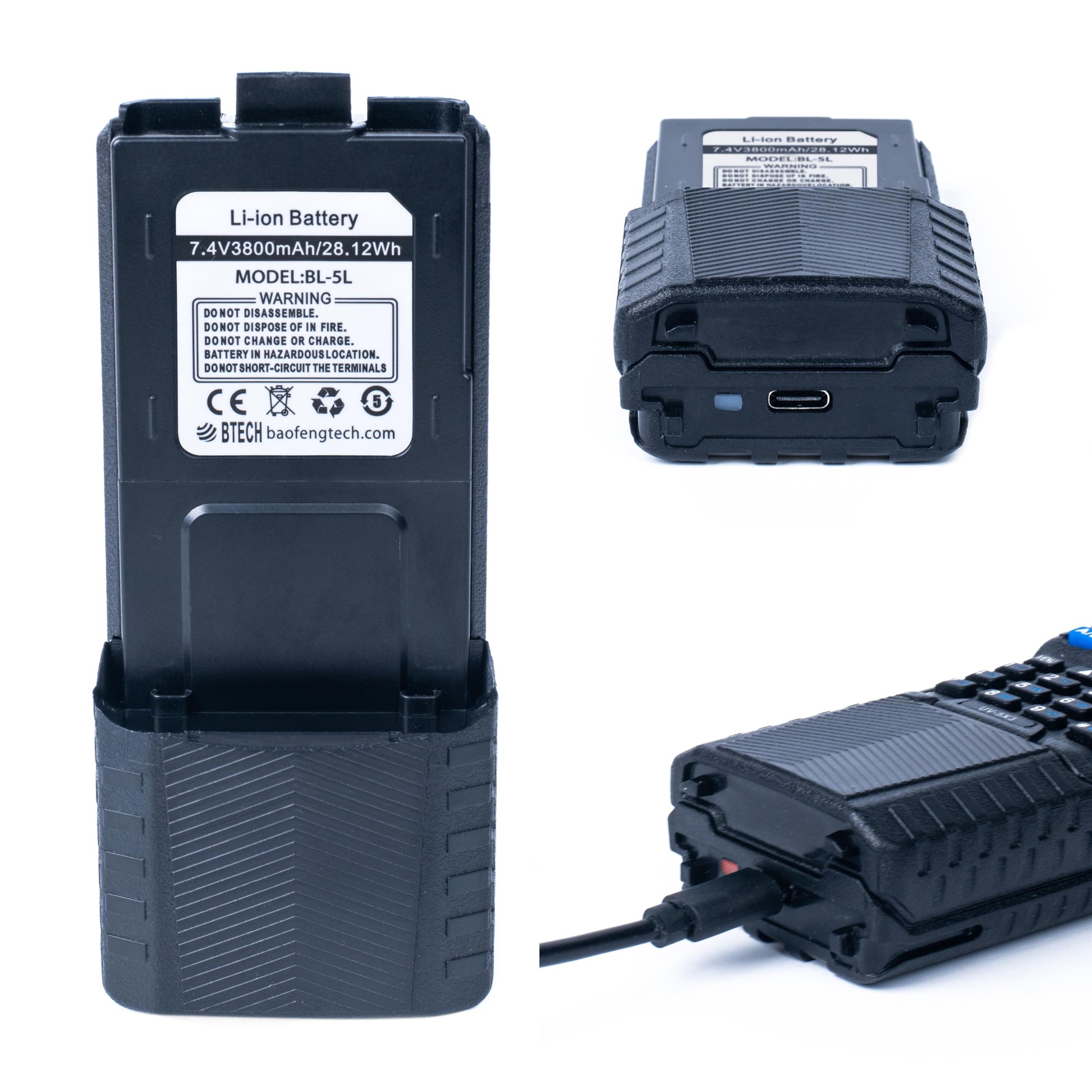 BTECH BL-5L 3800mAh USB-C Charging Li-ion Battery Pack, High Capacity Extended Battery for UV-5X3, BF-F8HP, and BaoFeng UV-5R Series Radios (BL-5 Battery Series)