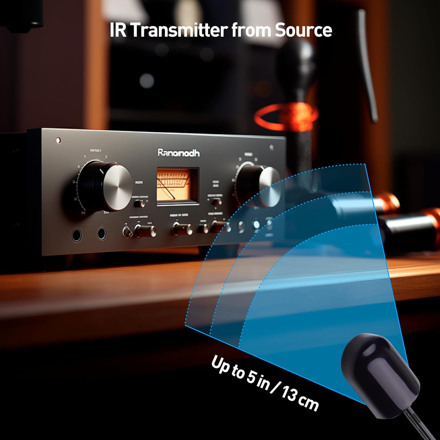 Home theater accessory repeats the IR signal to a DVD player, STB box, Receiver or other A/V source with an IR sensor; Route the infrared remote control extender cable out of sight with a wall mounted TV; Install the IR Transmitter end in a concealed equipment closet to hide a CATV box and control it remotely