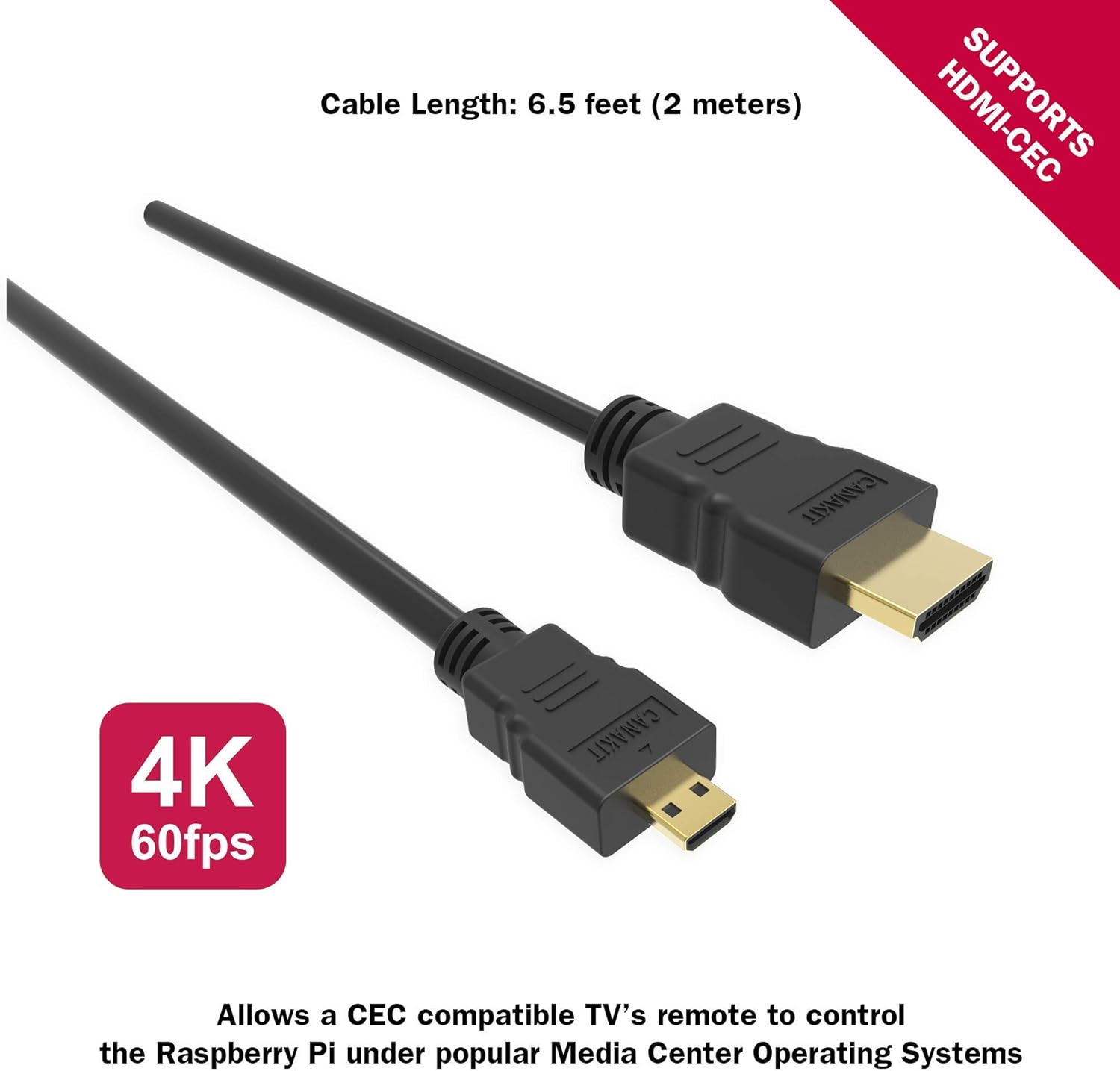 2 x CanaKit Micro HDMI to HDMI Cable - 6 foot (Supports up to 4K 60p)