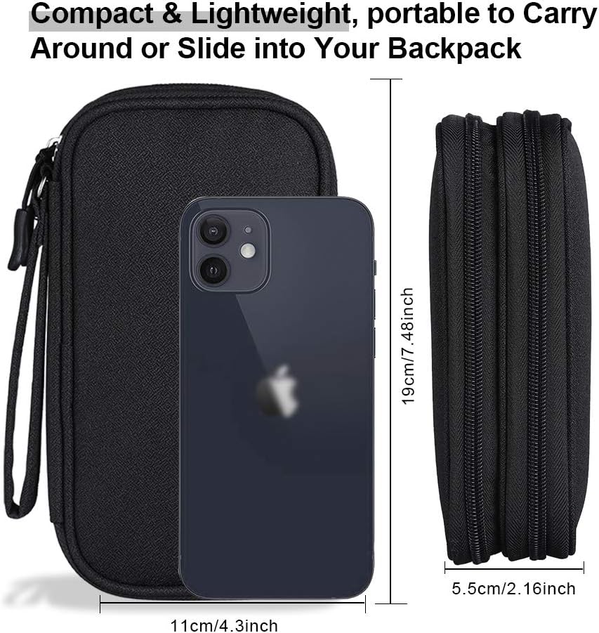 Compact and Portable: This small electronics accessories carrying bag is compact & lightweight. It is about the size of your wallet, with dimension: 7.48 x 4.33 x 2.16 inch, Also it is lightweight, only 117 grams, will be convenient to use in daily life