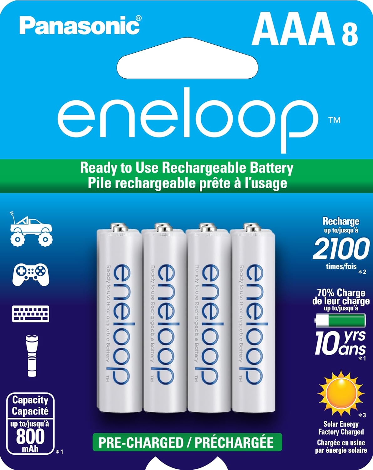 SECURE, PROTECTIVE PACKAGING: This package contains 8 eneloop AAA rechargeable batteries