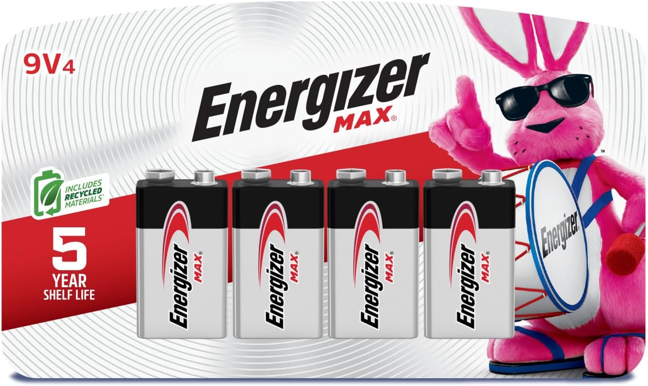 4 pack of Energizer MAX 9V Alkaline Batteries, Batteries 9 Volt Size