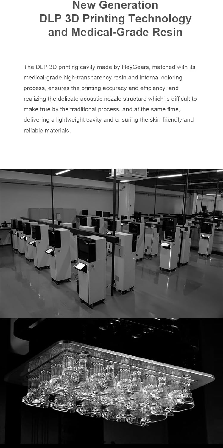 Using a DLP-3D printing cavity, usually reserved for high-end multi-drivers products and custom earphones, and the hand-made glue dropping and capping process.
