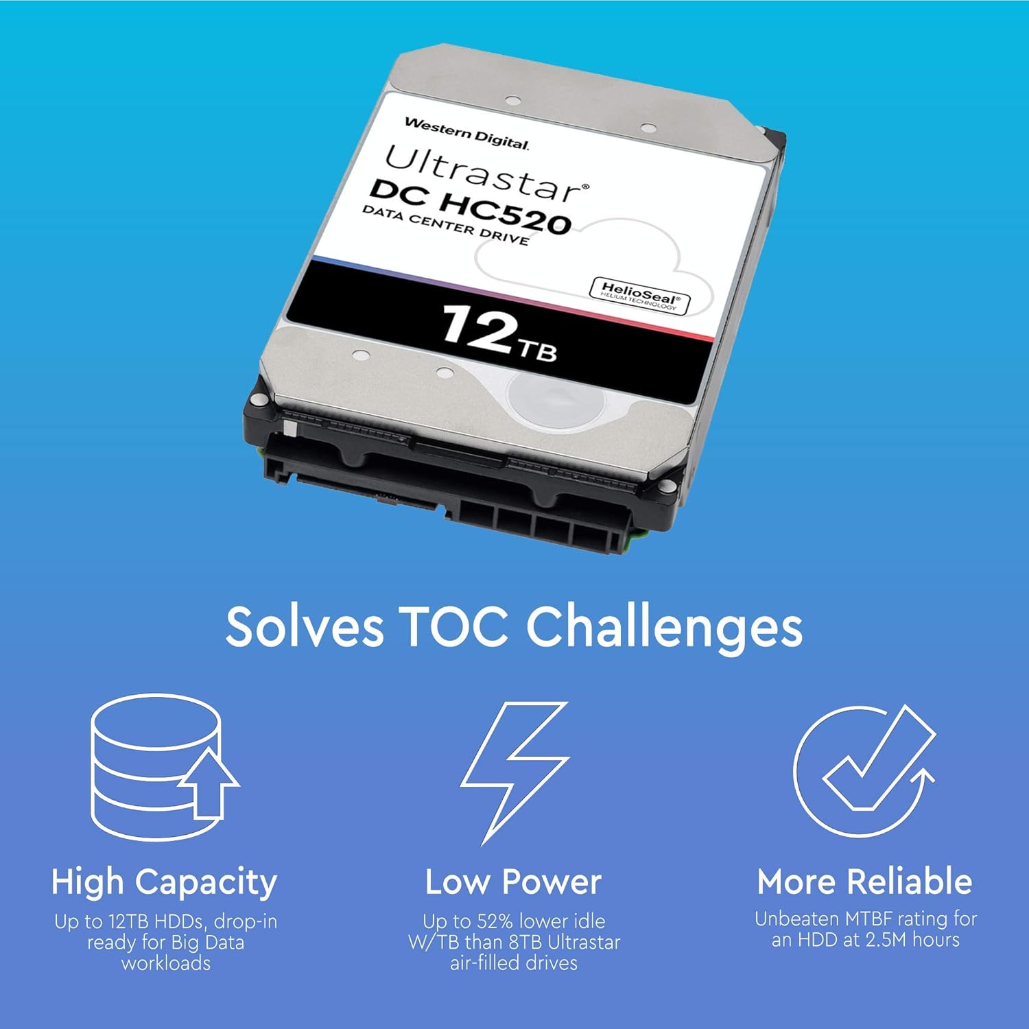 HGST - WD Ultrastar DC HC520 HDD | HUH721212ALE601 | 12TB 7200RPM SATA 6Gb/s 256MB Cache 3.5-Inch | ISE 512e | Helium Data Center Internal Hard Disk Drive (Renewed)