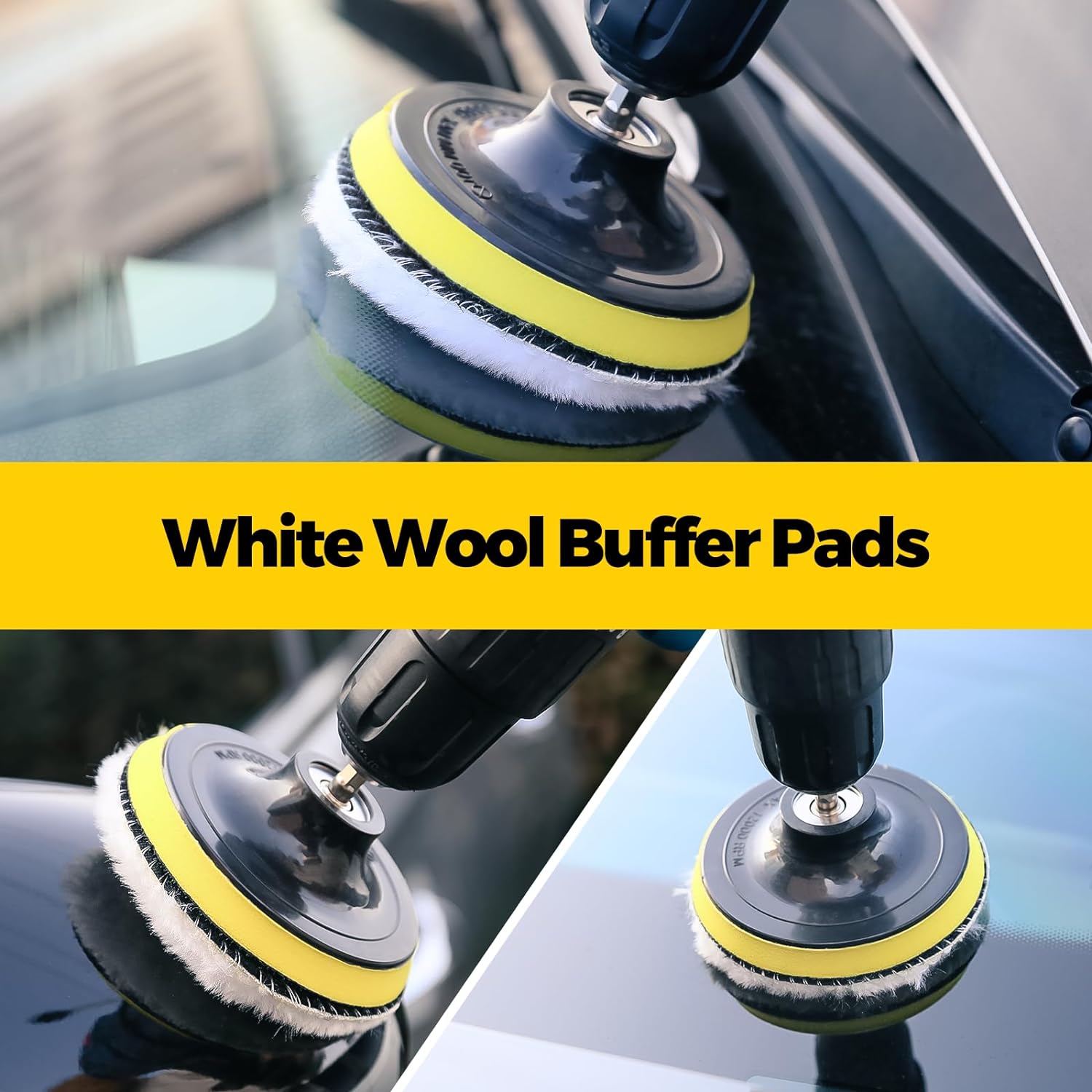 3 Piece Sponge Polishing Pads and 1 Piece White Wool Buffer Pads:Used for all kinds of coat paints's waxing, polishing and sealing glaze, to clean and improve their lightness; And for auto car detail polishing. Professional wool and foam pad buffing, polishing and finishing system. Efficient cutting and polishing the most difficult car oxidation coating, scratches